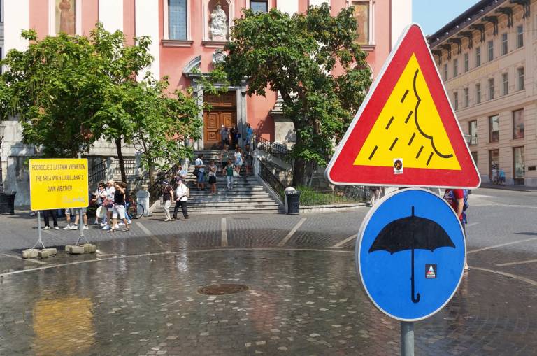 In ko je drugod suša, v centru Ljubljane dežuje – po zaslugi umetnosti.