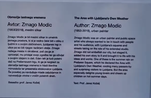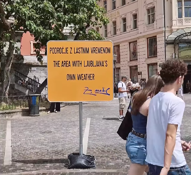 Z njo umetnik simbolno ustvarja »območje z lastnim vremenom«, na kar opozarjajo tudi posebni prometni znaki – prav tako Modičevo delo – in tabla z napisom: Območje z lastnim vremenom – The area with Ljubljana's own weather.