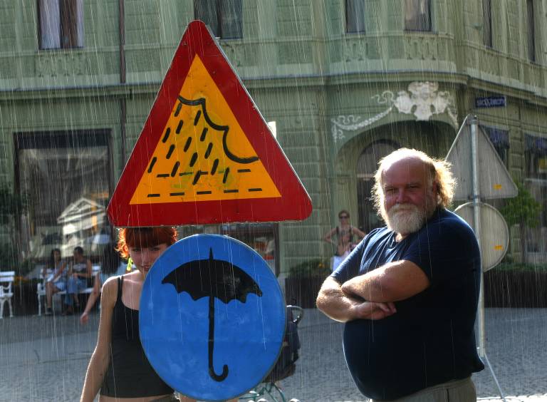 Vsako poletje sredi vročinskega vala v Ljubljani nepričakovano dežuje. A ne zaradi vremenske napovedi – za osvežujoč umetni dež nad Prešernovim trgom že štirinajsto leto zapored poskrbi umetnik Zmago Modic.