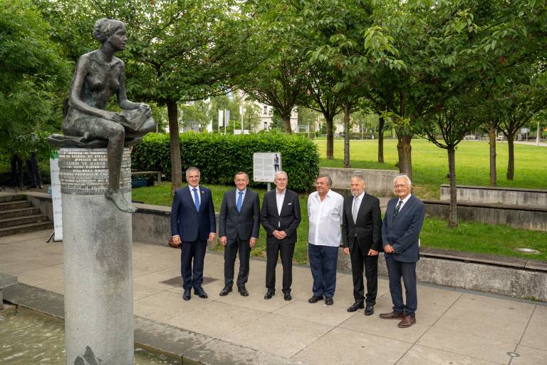Središče pozornosti je bila nova misel pisatelja Draga Jančarja, dodana kipu Deklice z rastočo knjigo: