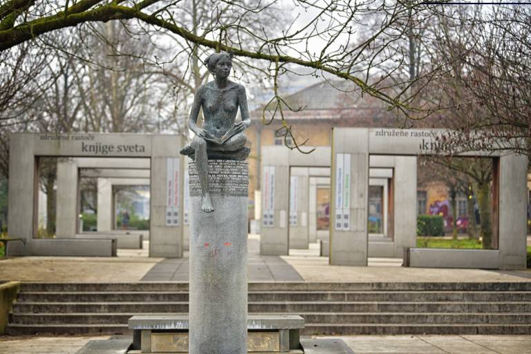 Poseben poudarek je dobila misel pisatelja Draga Jančarja, ki zdaj dopolnjuje kip kot poklon moči branja in domišljije.
