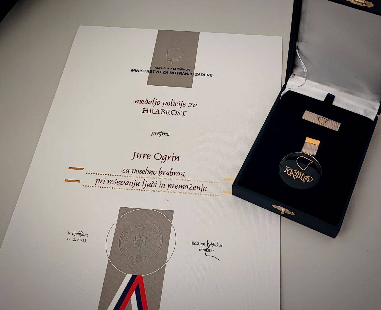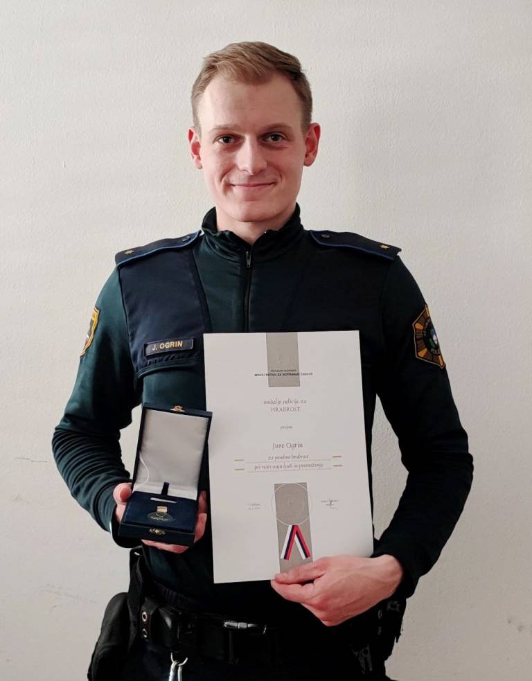 Skupaj s kolegom Matjažem Vrečičem sta za to svoje dejanje prejela medaljo za hrabrost.