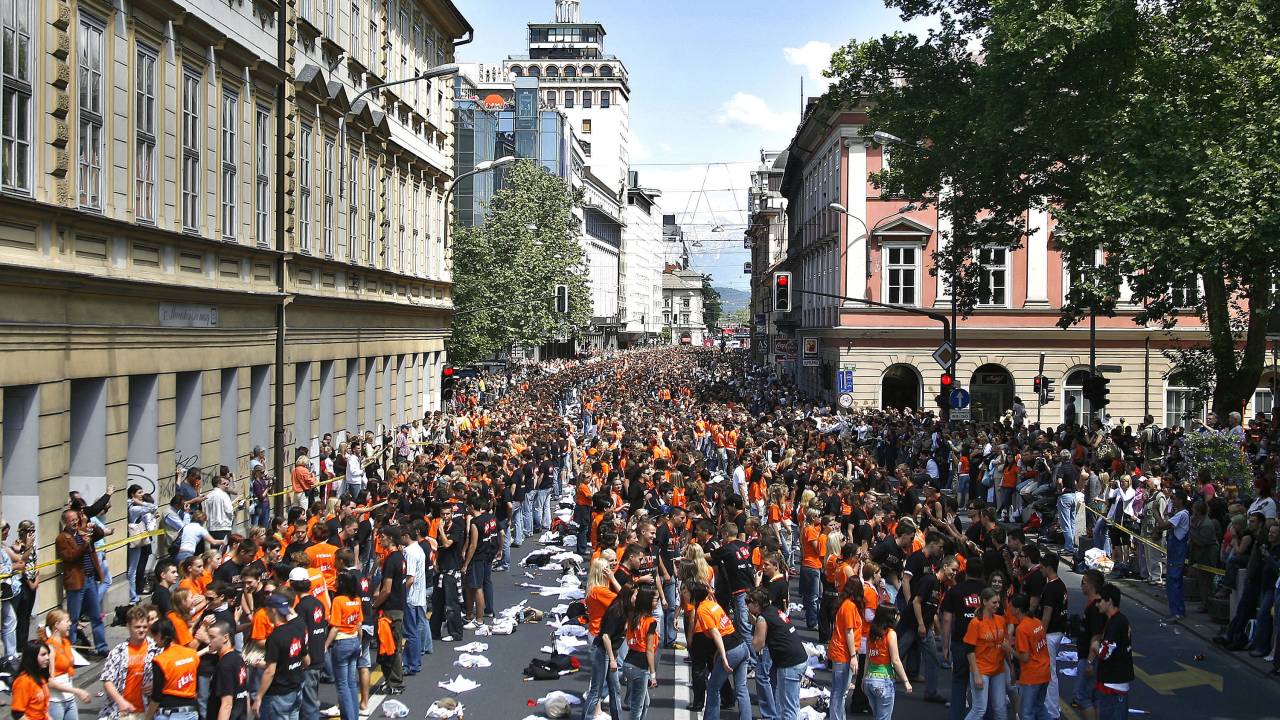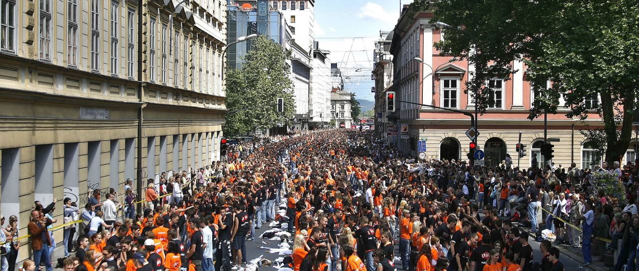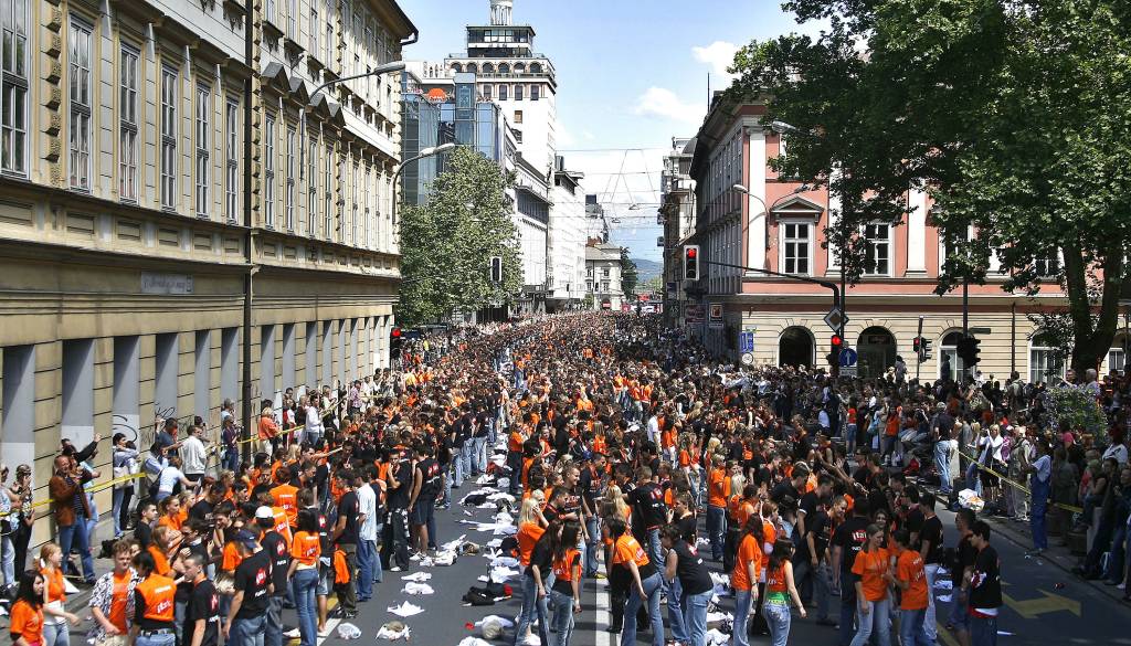 Na Kongresni trg se vrača Parada ljubljanskih maturantov.
