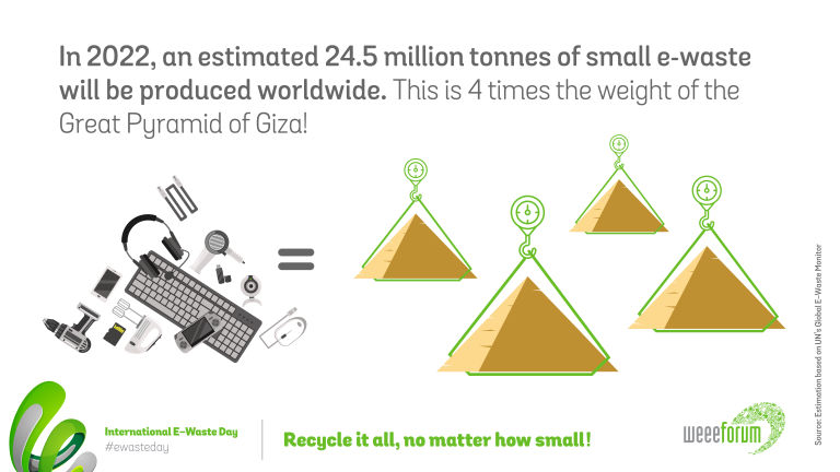 Slogan letošnje izvedbe mednarodnega dneva e-odpadkov se zato glasi »Recycle it all, no matter how small!« Ali po slovensko »Vse e-odpadke recikliraj, na velikost se ne oziraj!«.