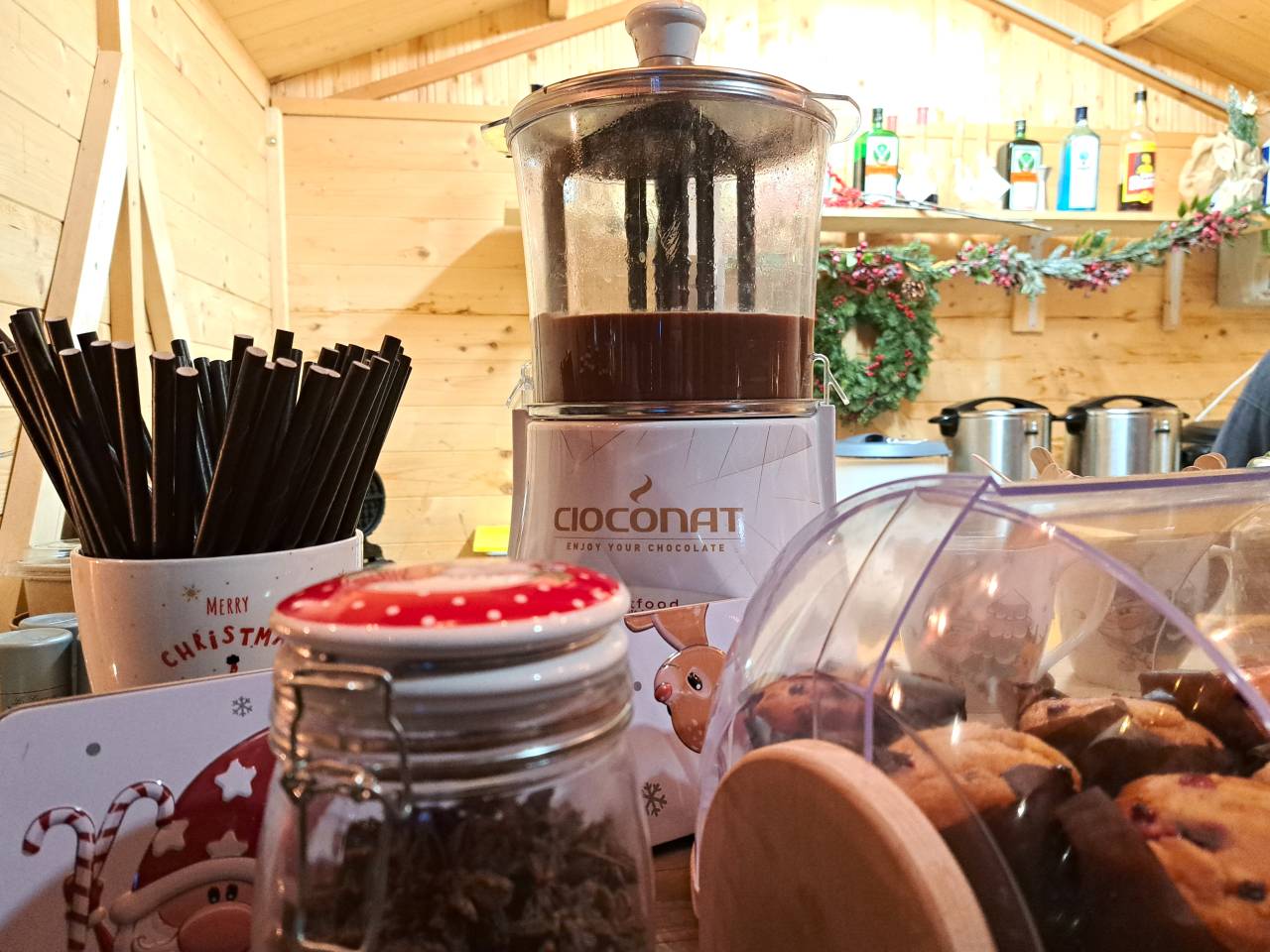 Med toplimi napitki si je mogoče privoščiti kuhan gin, punč, apfel strudel, vroči aperol, vročo hruško, čaj in čaj z rumom. Ne manjka niti vroča čokolada.