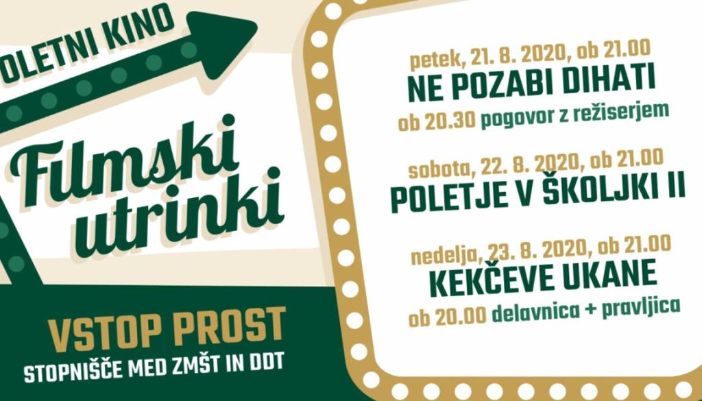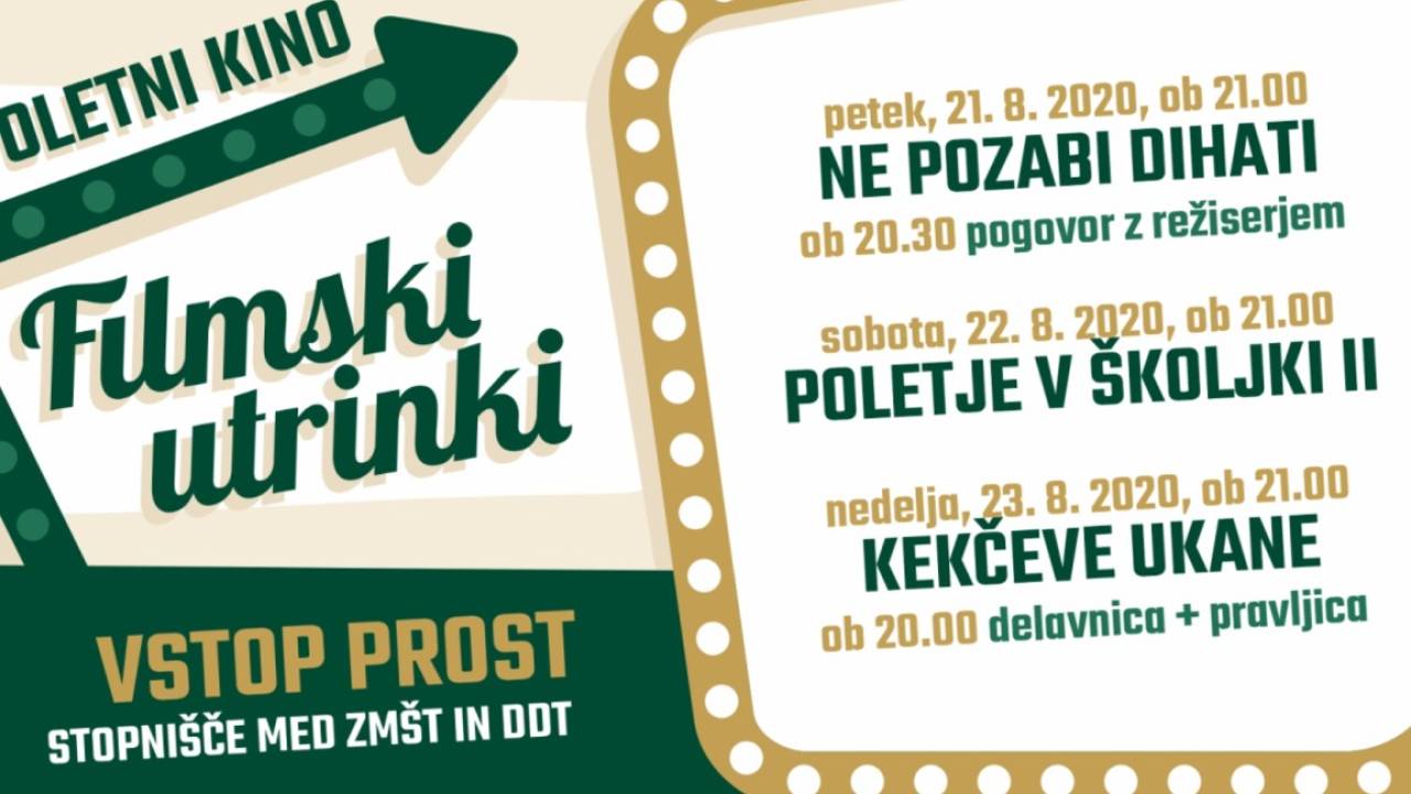 Delavski dom Trbovlje že deseto leto zapored v času poletnih počitnic organizira za vas filmske projekcije na prostem, poletni kino FILMSKI UTRINKI. Letošnji bodo potekali med 21. in 23. avgustom, na stopnišču pred Delavskim domom Trbovlje. V petek, 21. avgusta ob 20.30, vabimo na pogovor z režiserjem Martinom Turkom, ki mu bo ob 21.00 sledila projekcija slovenskega filma Ne pozabi dihati.