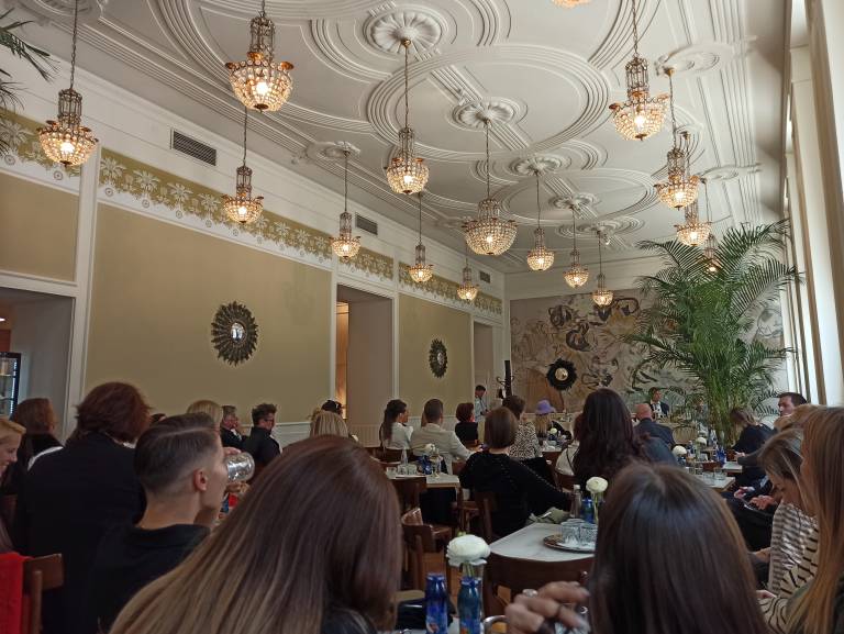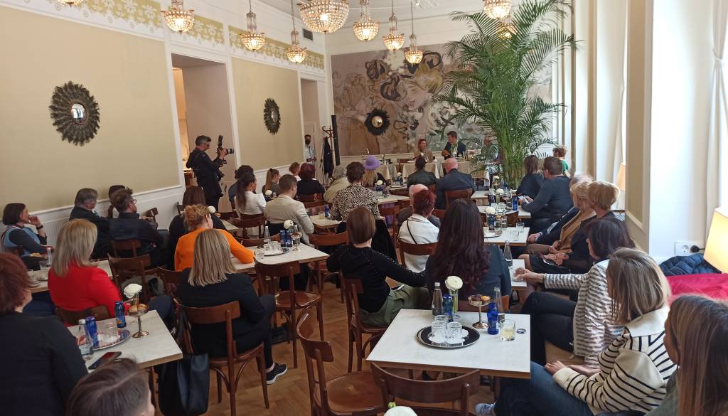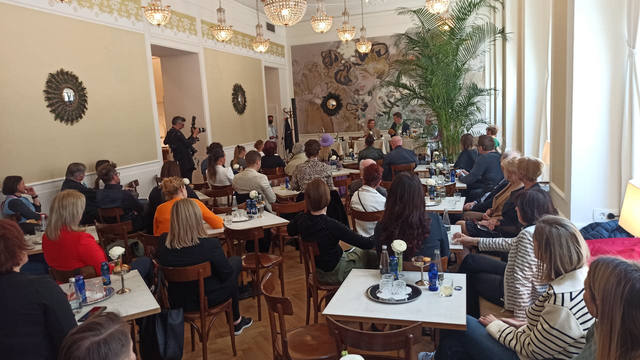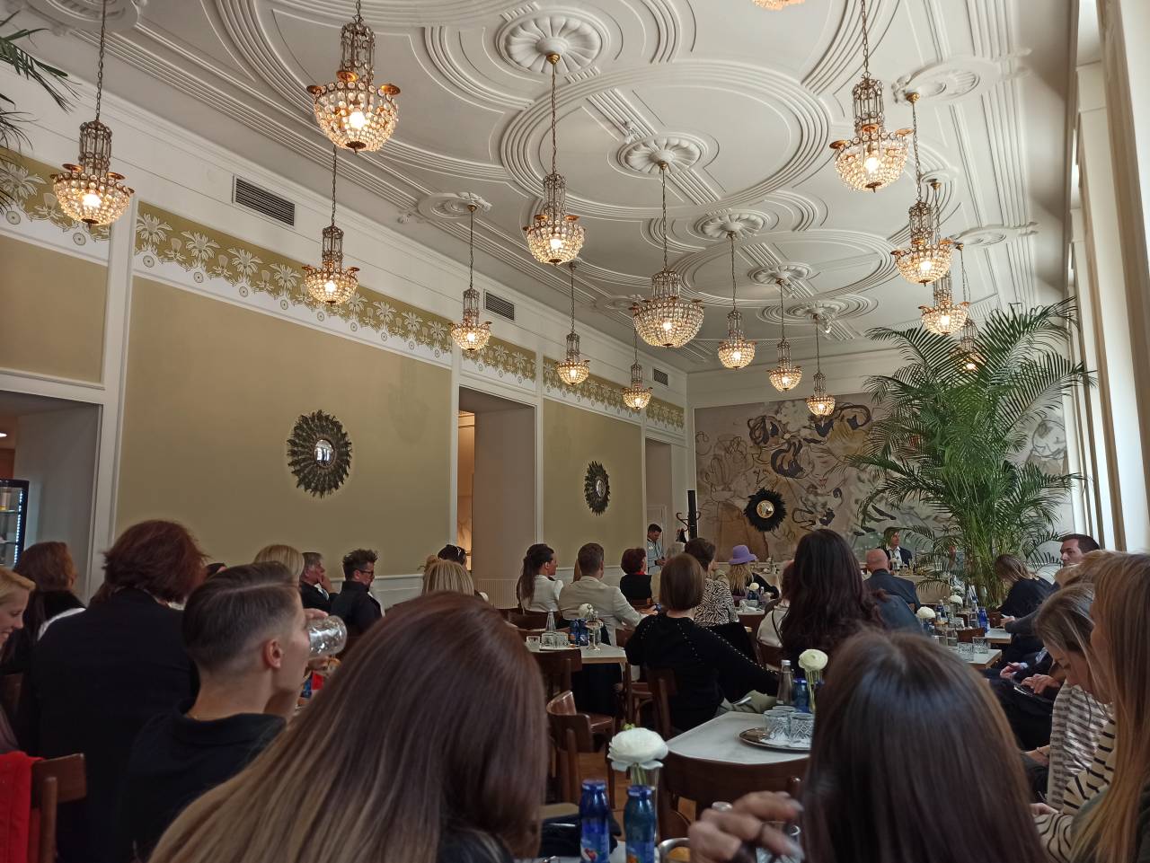 »Veseli smo, da smo lahko ohranili elemente naših prednikov. Strop ostaja nespremenjen in ga krasijo kristalni lestenci,« je sporočila direktorica in dodala, da gostje sedijo na stolih, ki so bili značilni za stare dunajske secesijske kavarne.