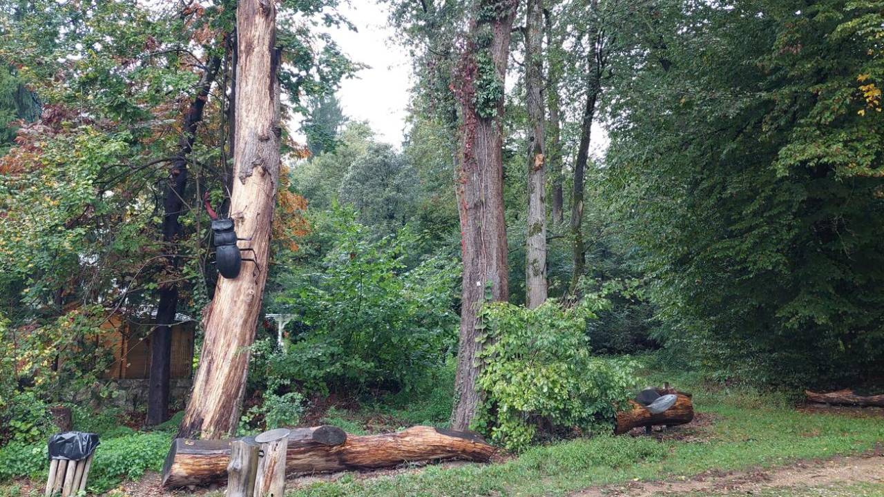 Edinstveno oblikovane klopi in skulptura hrošča pa so lep primer ponovne oživitve posekanih hrastov na tem območju.