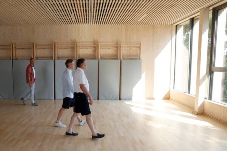 Kasneje pa je bila v fazi priprave projektne dokumentacije sprejeta odločitev, da bo namesto fitnesa z individualnimi napravami zgrajena mala telovadnica s površino 280 kvadratnih metrov za skupinske vadbe.