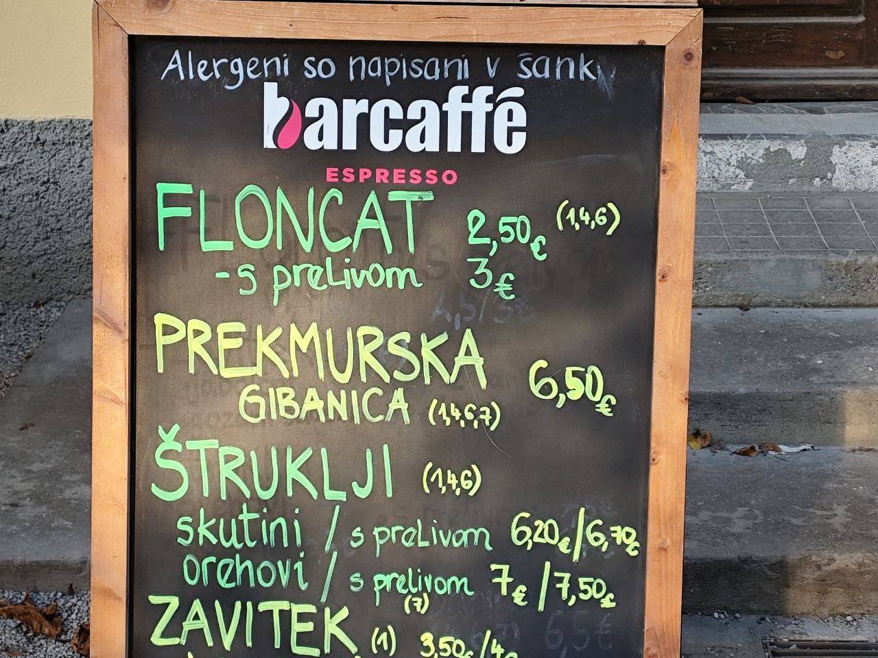 Namesto njih je v ponudbi 'floncat', beseda, ki je Slovar slovenskega knjižnega jezika ne pozna, očitno gre za skovanko gostilne na Rožniku.