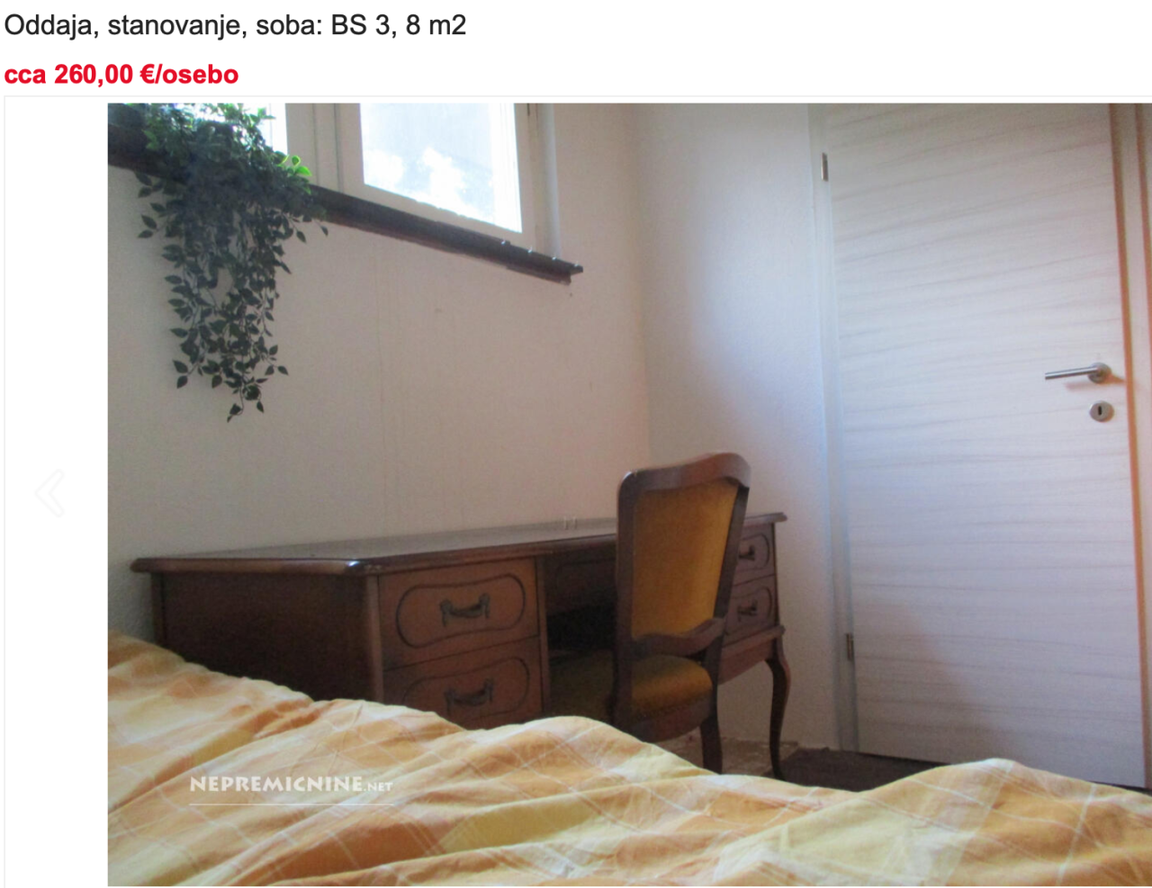 Najmanjše sobe (praviloma na obrobju mesta) si je moč priskrbeti za približno 200 evrov.