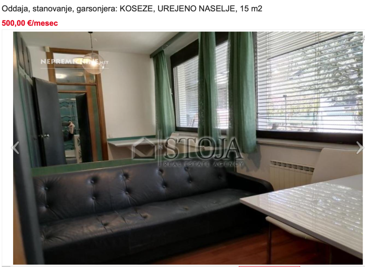 Poglejmo še nekaj nastanitev višjega cenovnega razreda (med 300 in 500 evri mesečno).