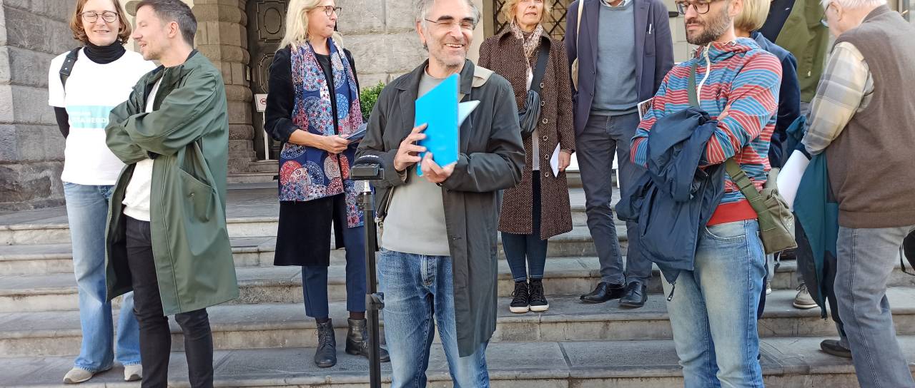 Danes so se pred Mestno hišo zbrali člani Liste Neodvisnih, ki se poteguje za volitve v ljubljanski mestni svet.