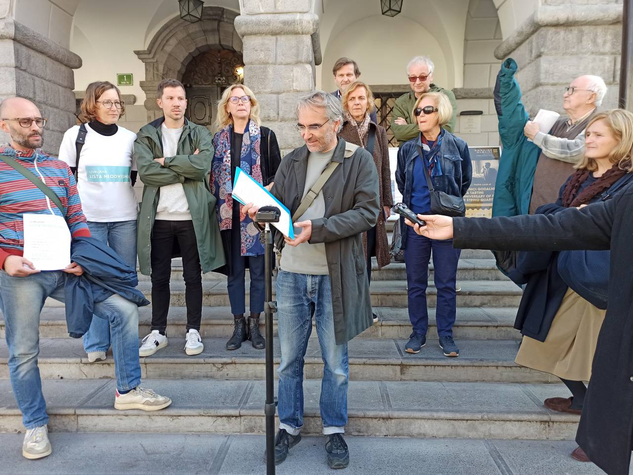 »Bojimo se še enega mandata Zorana Jankovića z absolutno večino v mestnem svetu. Pozni smo z zbiranjem podpisov zaradi več razlogov. Eden od njih je, da se nihče od nas s tem še ni ukvarjal. Smo strokovnjaki in kritično misleči meščani, ki nas res zelo muči, kaj se v mestu dogaja. To delamo v prostem času,« je govor Liste neodvisnih začel arhitekt Arne Vehovar.