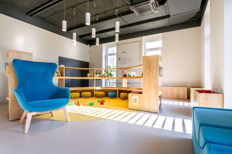 Posebnosti knjižnice sta tudi pitnik s tekočo vodo ter poseben prostor, ki smo ga poimenovali Kreativnica. To je večnamenski oblikovan prostor za izvajanje različnih kreativnih delavnic ter samostojno uporabo 3D tiskalnika, šivalnega stroja in drugih orodij. Oblikovali smo tudi že program delavnic s področja računalniških znanj, robotike, ročnih spretnosti ter šivanja za različne skupine uporabnikov.