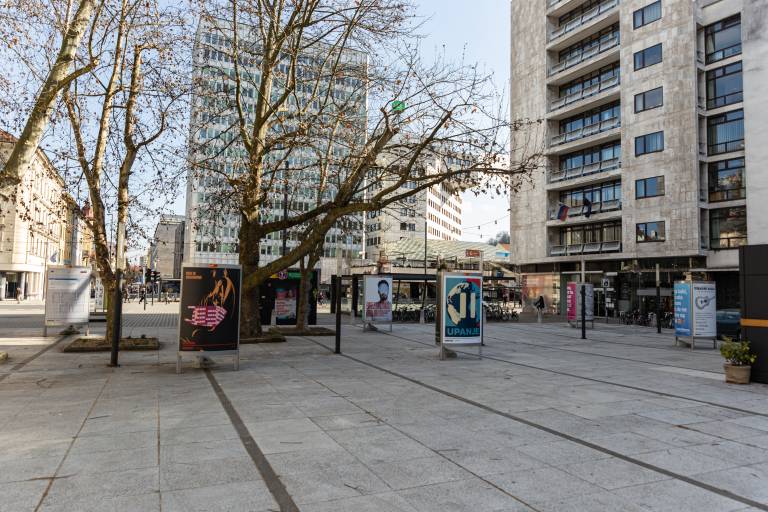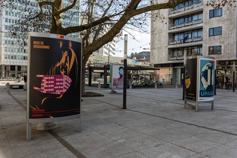 Razstavišče na Slovenski ploščadi pred Figovcem bo postavljeno vse do konca leta 2021. Razstava plakatov na temo koronavirusa bo na ogled do 25. marca. Vabljeni k ogledu pozitivnih, duhovitih, odgovornih in empatičnih sporočil.