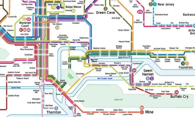 Cankarjev dom se je preimenoval v Ivan's home, Ziherlova ulica pa v Sure Way. Streliška ulica je skrajšana za ime Shootings, Jamnikarjeva ulica pa se je spremenila v Caveman Road.