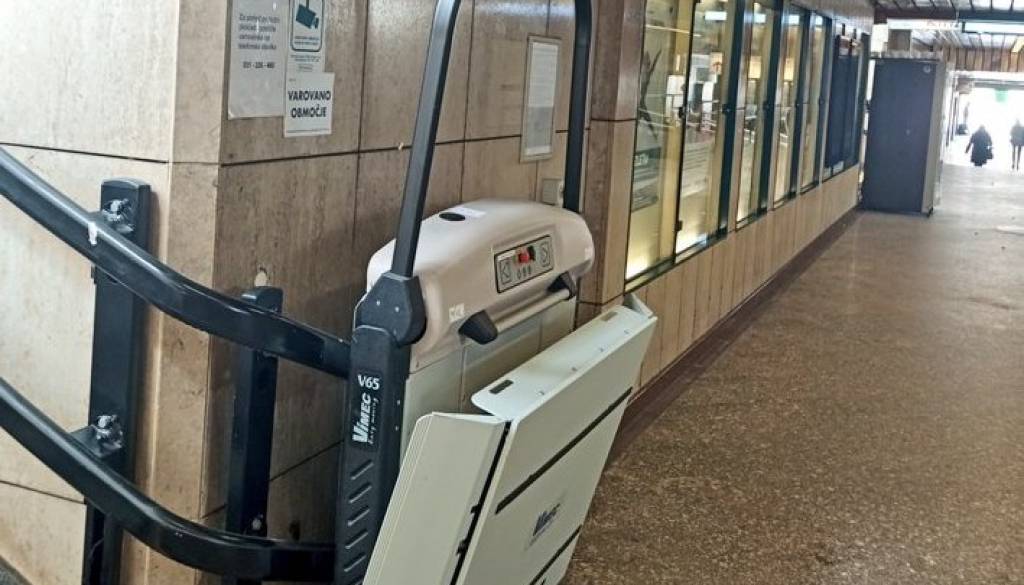To naj bi bilo že dlje časa v okvari oziroma razpoložljivo le, če se prihod gibalno ovirane osebe napove vnaprej. Na železniški postaji je sicer tudi običajno dvigalo, a je večino časa nabito polno.