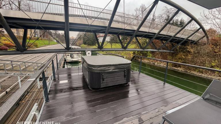 Njuna posebnost je velika zgornja terasa z masažnim bazenom.