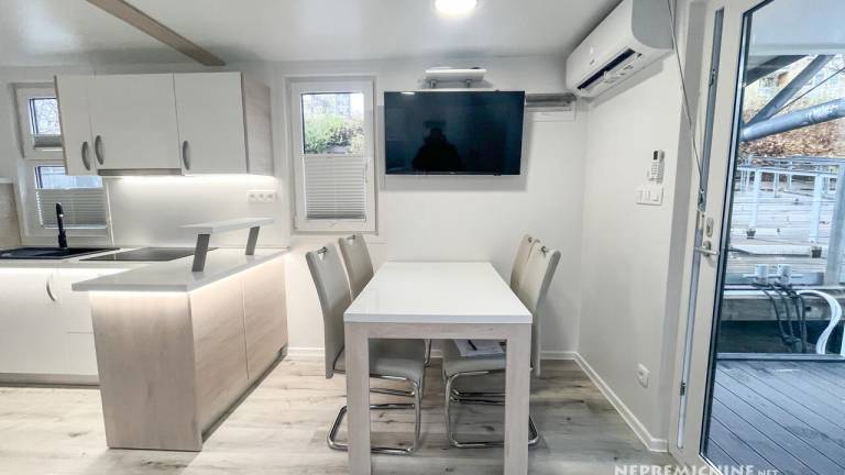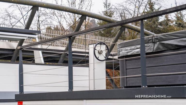 »V našem podjetju ponujamo dve izjemni luksuzni plavajoči hišici, ki združujeta udobje, sodoben dizajn in nepozabno izkušnjo bivanja ob vodi ali kar na njej. Gre za model priznane znamke 3maram d.o.o., dolžine 11 metrov in širine štiri metre. Hišica ponuja 32 kvadratnih metrov notranje bivalne površine ter dodatnih 38 kvadratnih metrov prostorne strešne terase, s katere se odpira čudovit razgled za idealno sprostitev ali druženje, prodamo.«