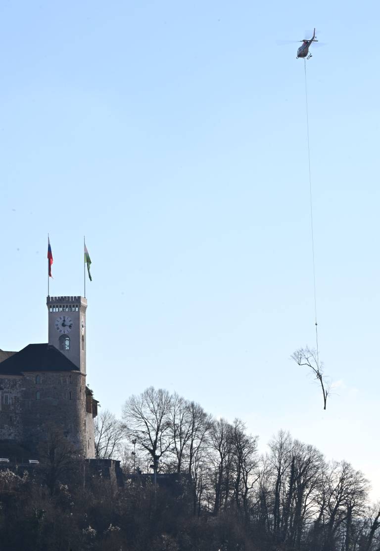 »Helikoptersko spravilo na Grajskem griču se je izvajalo z enomotornim helikopterjem Airbus H125, ki lahko v optimalnih okoliščinah dvigne do 1050 kilogramov težak tovor.