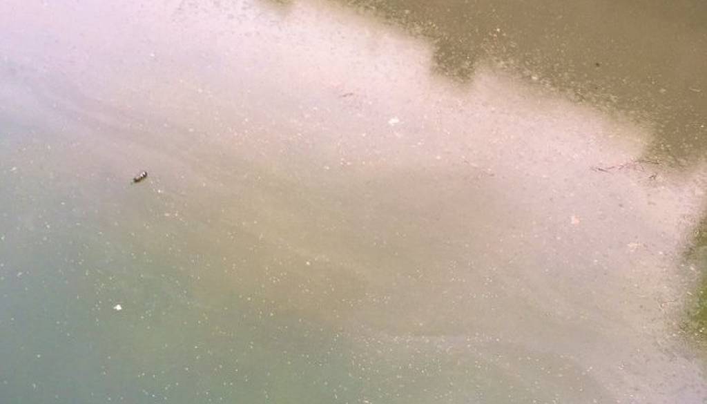 Ljubljančani so danes na gladini Ljubljanice v centru mesta opazili nenavadne mastne madeže.