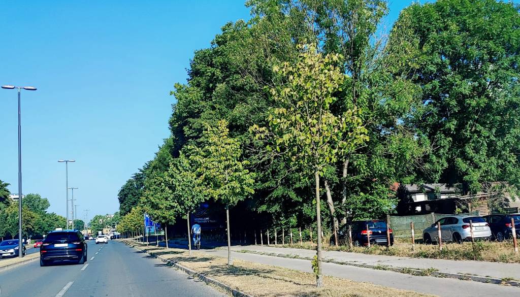 Na Letališki cesti je nekaj dreves delno porumenelo, večinoma pa so lepo zelena, na prvi pogled zdrava.