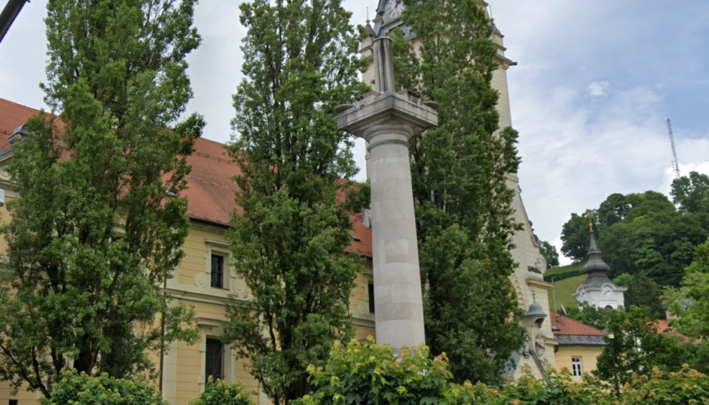Eden od elementov trga je tudi Marijin steber: pet figur, ki so na varnem, nameravajo zamenjati s kopijami: kopijo blažene Marije v bronu in kopijami štirih svetnikov.