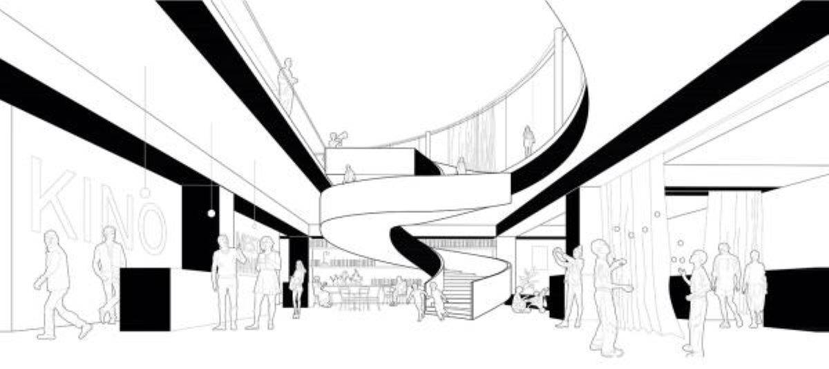 Ta bo predstavljal vhod v minipleks. V podhod bodo vodile vodile krožne stopnice, po katerih bo obiskovalec prišel v osrednji prostor kina, okoli pa bodo razporejene kinodvorane.