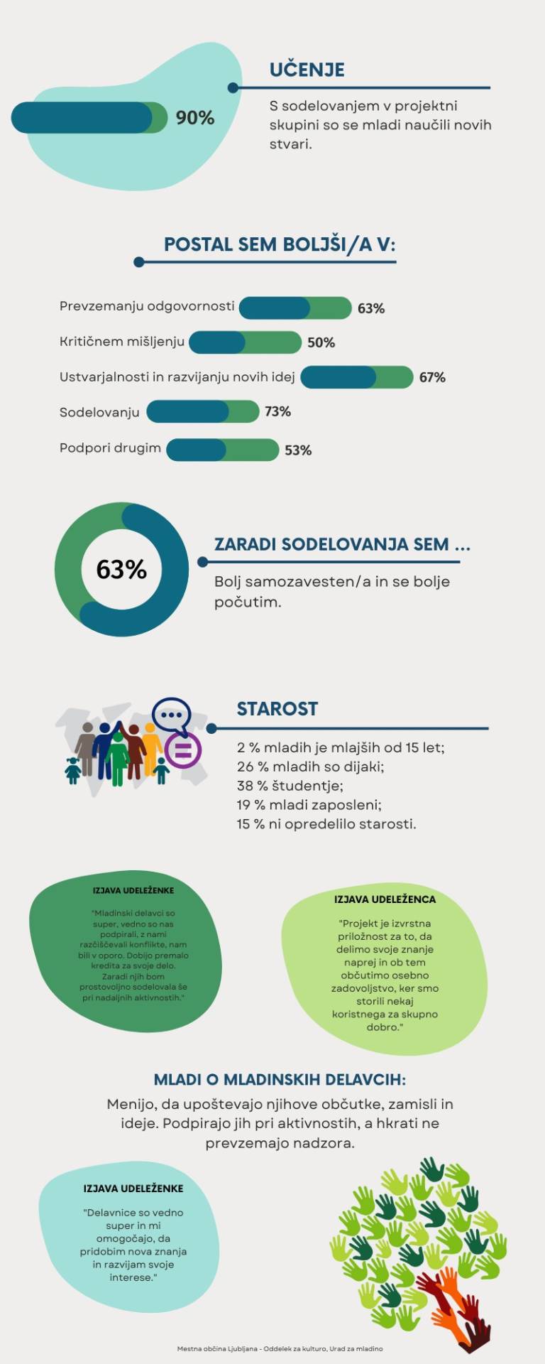 V grafični obliki so predstavili nekatere rezultate raziskave, ki kažejo na način razmišljanja ter dojemanja mladih udeleženk in udeležencev mladinskih aktivnosti na področju Mestne občine Ljubljana: