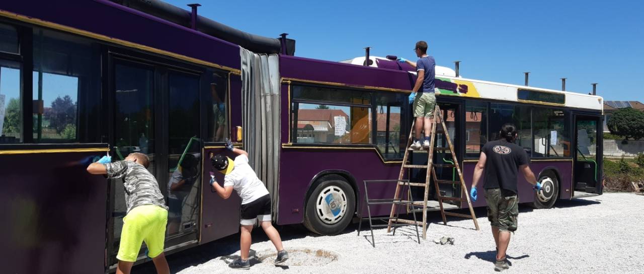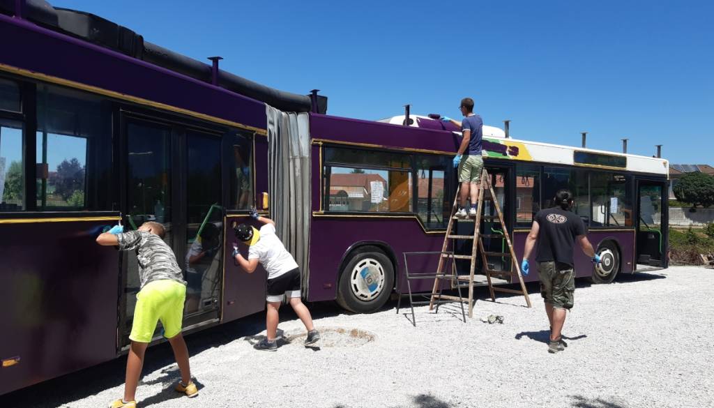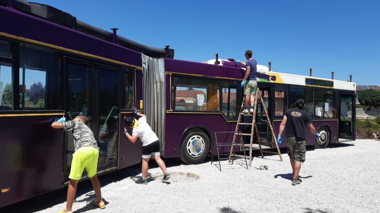 Mladi zmaji s pomočjo odsluženega avtobusa na Cesti španskih borcev ustvarjajo nov skupnostni center.
