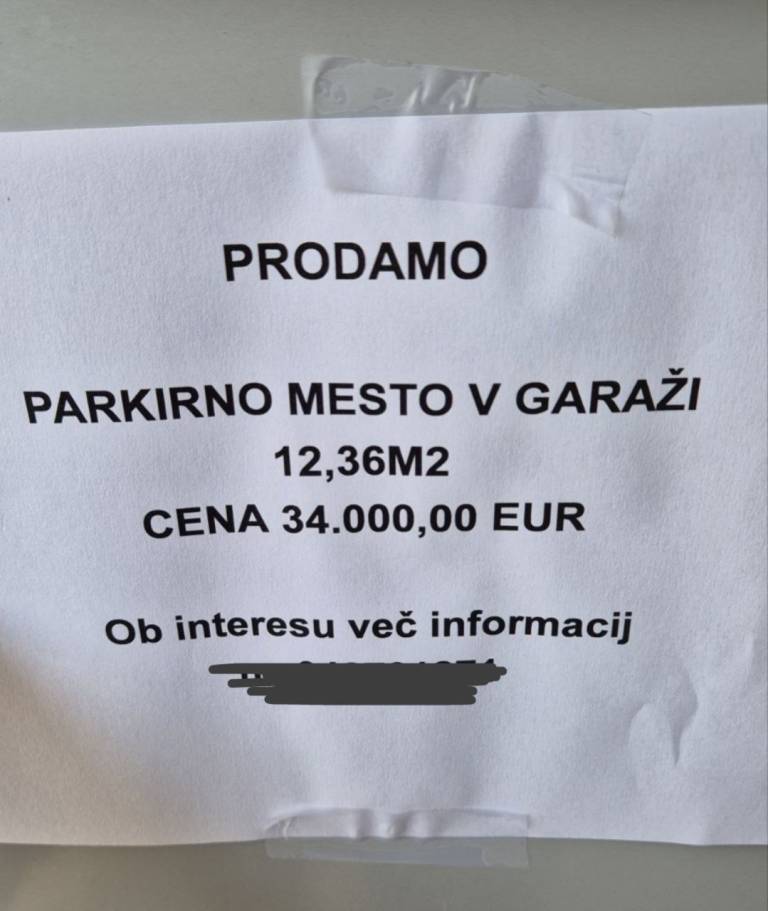 To pomeni, da mesto za parkiranje stane 2.830 evrov na kvadratni meter. Lokacija v oglasu sicer ni natančno razkrita, a znano je, da gre za Ljubljano.