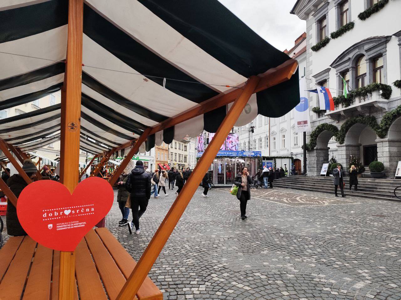 »To je dobrosrčna tržnica,« so nam povedali študentje, ki so stali pri stojnici ministrstva za kmetijstvo, gozdarstvo in prehrano, ki je Dobrosrčno tržnico organiziralo.