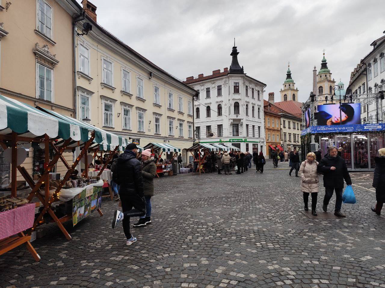 Danes pa so na Mestnem trgu poleg prazničnega radijskega studia zrasle še stojnice.