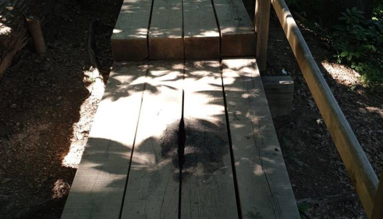 Jesenski sprehod na Rožnik bo odslej še bolj prijeten, predvsem pa varen. Po poti nad Švicarijo so namreč dotrajan lesen most nadomestili z novim.