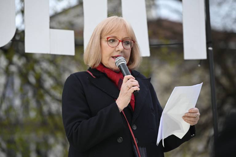Na današnjem protestu je spregovorila Renata Salecl - filozofinja, sociologinja in pravna teoretičarka, ki bo opozorila na nekatere ključne avtoritarne poteze in pravne zlorabe trenutne oblasti.