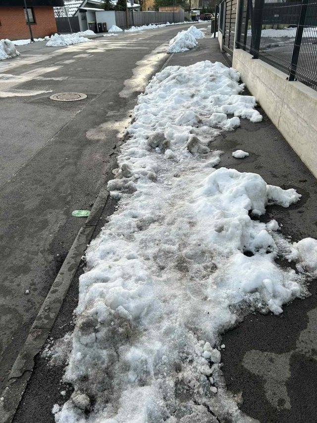 »Ne vem, koliko dni je že od sneženja, ampak kot je razvidno iz fotografije, nimamo kje hoditi, razen po cesti. Prosimo za čiščenje.«