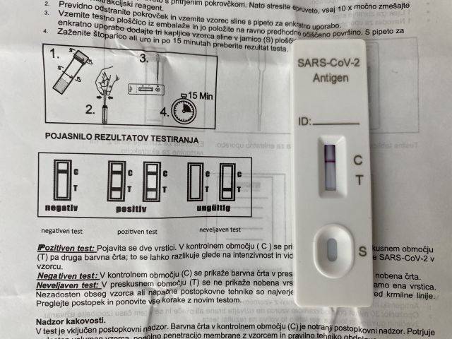 Če se obarva le ena črtica, smo negativni na koronavirus, če se pojavita dve, smo okuženi. Na srečo v uredništvu nismo potrdili okužbe s covid-19.