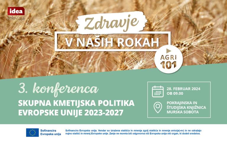 Televizija Idea v sklopu projekta Zdravje v naših rokah pripravlja že tretjo konferenco, na kateri bodo govorci spregovorili o aktualnih priložnostih, ki jih prinaša Skupna kmetijska politika.