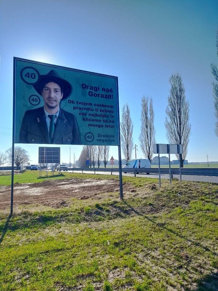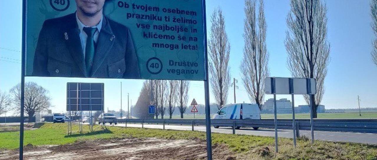 Med vožnjo iz Murske Sobote proti Rakičanu nam je v oči padel oglasni pano s čestitko za rojstni dan.
