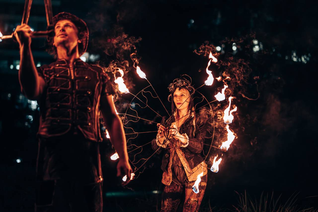 Vrhunec pustne sobote se obeta z Nočnim spektaklom od 17. ure dalje. Ob tem lahko pričakujete izjemen ognjeni šov Tine in Matjaža, ki bo pričaral spektakularno igro teme in svetlobe.