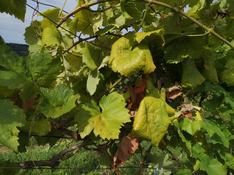 Bolezen lahko hitro prepoznamo. Na belih sortah listi rumenijo, na rdečih pa pordečijo, značilno je tudi zvijanje navznoter. Seveda, je tudi vino slabše kvalitete.