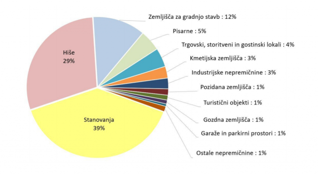 Po deležu v prometu so prevladovala stanovanja, hiše in zazidljiva zemljišča.