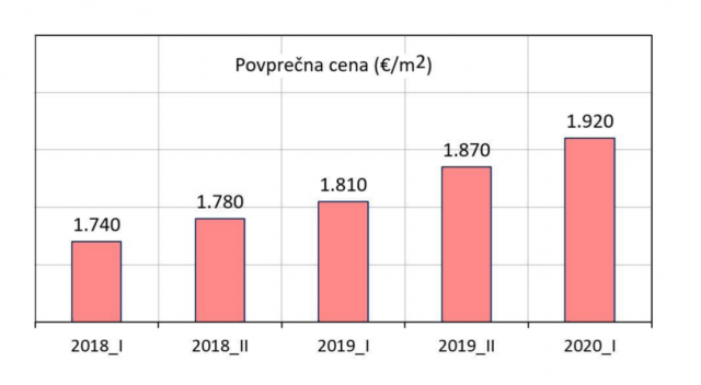 V prvi polovici leta 2020 je bilo za stanovanje v povprečju treba odšteti 1920 evrov na kvadratni meter.