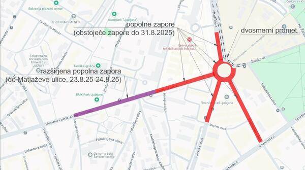 V Ljubljani se nadaljuje rekonstrukcija krožišča Žale in pripadajočih priključnih cest. Mestna občina Ljubljana obvešča, da bo ob obstoječih zaporah med 23. in predvidoma 25. avgustom 2025 dodatno zaprt odsek Linhartove ceste do Matjaževe ulice.