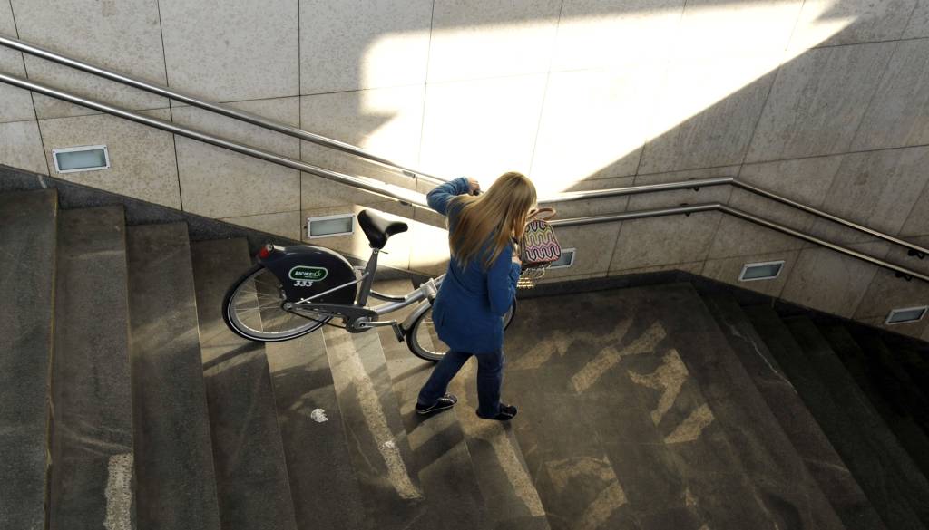 Nove železniške postaje se veselijo predvsem kolesarji, ki v velikem številu vsak dan slalomirajo med potniki skozi podhod železniške postaje in nato kolo naložijo v dvigalo (kar je sicer prepovedano) ali pa kolo po zelo ozki stezi ob strmih stopnicah, ali pa kar po stopnicah porivajo navzgor na cesto ali navzdol v podhod.