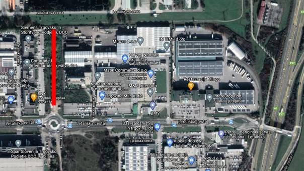 Parkirišče oziroma končno postajališče bodo navezali na severni krak obstoječega krožnega križišča na Letališki cesti - južni krak povezuje Spar Slovenija z Letališko cesto - ter izvedli do roba območja vojašnice Edvarda Peperka na severni strani.