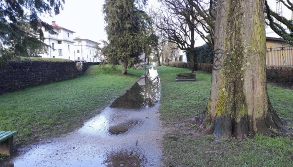 Pešpot ob Rimskem zidu na Mirju je v primeru slabega vremena kaj hitro domala neuporabna. Pešci in kolesarji se lužam izogibajo s hojo po travi, ki se posledično uničuje in spreminja v blato