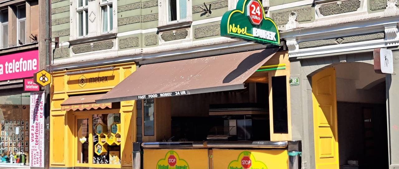 Na pobudah meščanov smo zasledili pobudo občana, ki se je pritožil nad obratovanjem in pretiranim oglaševanjem prodajalne Nobel burek po Miklošičevi cesti.