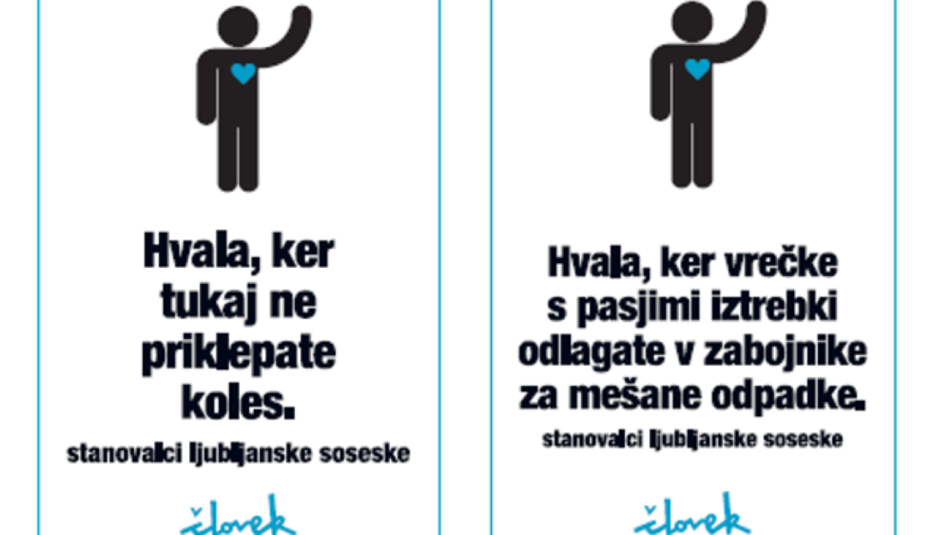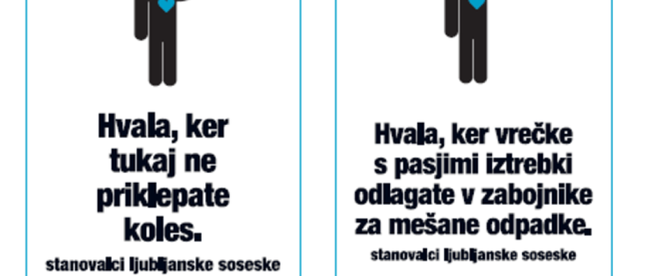 Prva se navezuje na pravilno odlaganje vrečk s pasjimi iztrebki, druga pa na parkiranje koles. S tem želimo še dodatno spodbuditi skrb za okolje v mestnih soseskah,« so razložili na Mestni občini Ljubljana.